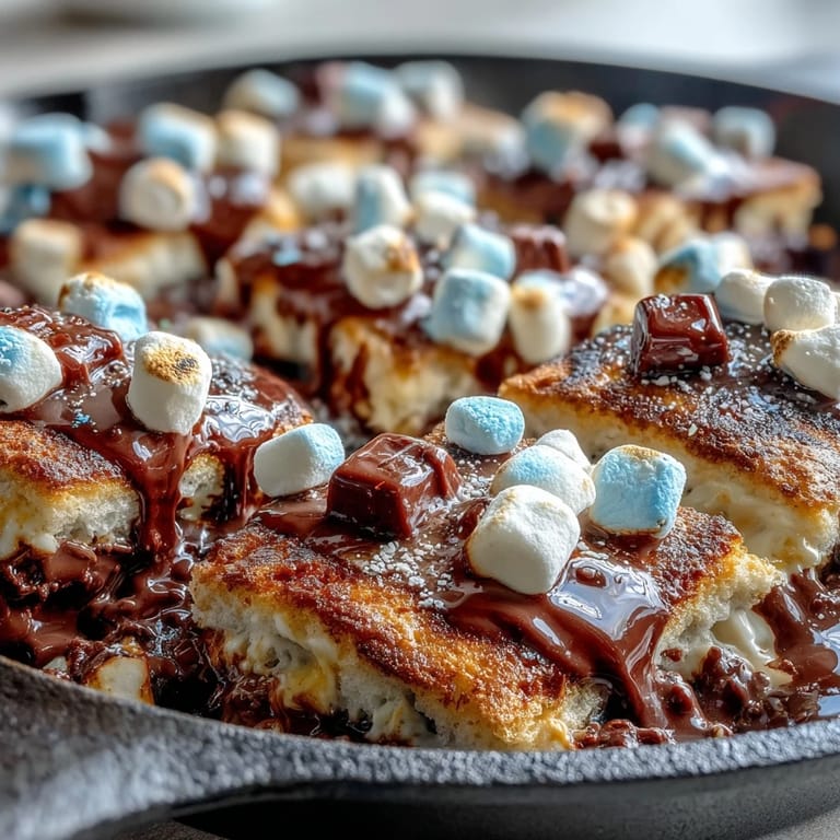 Using a cast iron skillet for this is brilliant because the metal distributes heat so evenly that you don't get hot spots where the chocolate burns or cool corners where the marshmallows stay pale and undertoasted. Plus, the skillet stays warm long enough that people can keep dipping and eating for a solid 10 to 15 minutes after you pull it from the oven. If you don't have cast iron, a ceramic baking dish works, but you'll lose some of that heat-retention magic that makes this dessert special.