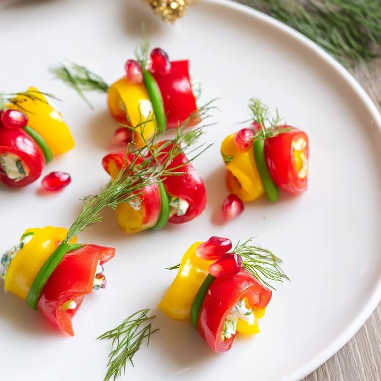 Pin this A festive and colorful vegetarian appetizer featuring sweet bell peppers shaped into charming Christmas bows, perfect for holiday gatherings.