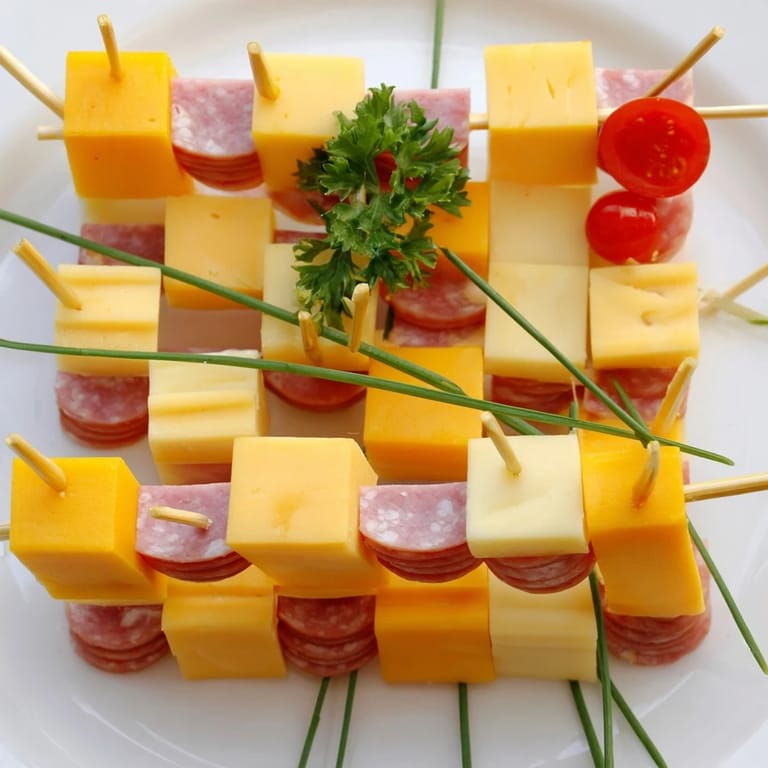 The real trick is choosing cheeses and meats that have personality without fighting each other. Sharp cheddar wants to be heard, while Swiss plays well with others, and together they create this back-and-forth conversation. For meats, I've learned that smoked ham brings warmth and salami adds mystery, but you could swap either for turkey breast, prosciutto, or even duck if you're feeling fancy. The key is picking items with enough structural integrity to stack without crumbling, which rules out soft cheeses and ultra-thin deli meats. I once tried spreadable cheese and watched it compress into nothing by the time the appetizer hit the table—never again.