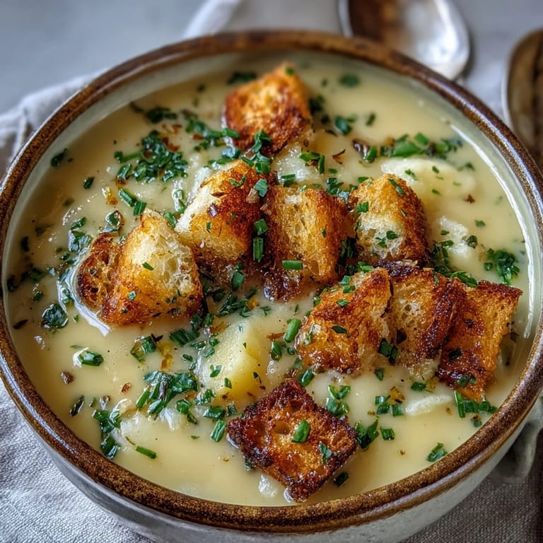 Pin this There's something about a kitchen filled with the smell of roasting garlic that makes everything feel quieter, slower, more intentional. I discovered this soup entirely by accident one autumn evening when I had far too much garlic from the farmers market and nothing in the pantry but potatoes, leeks, and herbs growing on the windowsill. What started as me nervously improvising turned into something I now make whenever I need the world to feel a little softer. It's the kind of soup that proves you don't need complicated ingredients to create something genuinely memorable.