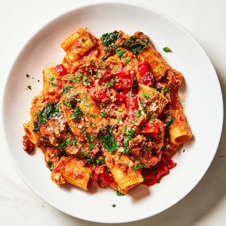 Pin this A vibrant, oven-baked pasta packed with Mediterranean flavors, featuring roasted garlic, fresh herbs, sun-dried tomatoes, and creamy feta. A comforting vegetarian dish perfect for weeknights or entertaining.