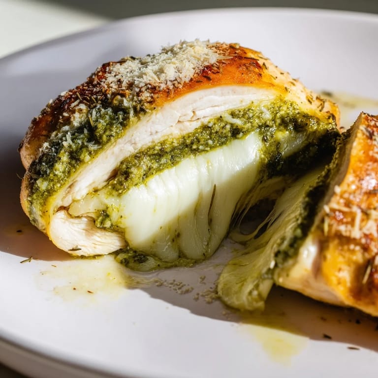 Pin this There is something so satisfying about cutting into that first chicken breast and watching the melted cheese and bright green pesto come spilling out onto the plate. It is simple enough for a weeknight but special enough to make any dinner feel like a celebration.