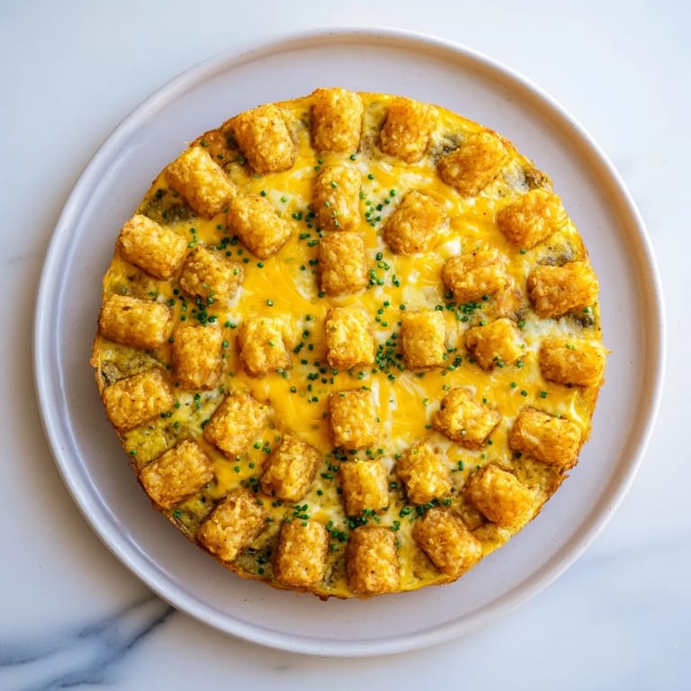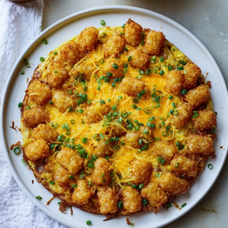 Pin this A hearty satisfying frittata featuring crispy tater tots eggs and cheese—an easy budget-friendly dinner hack perfect for busy nights.